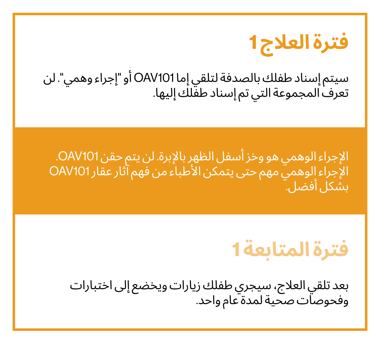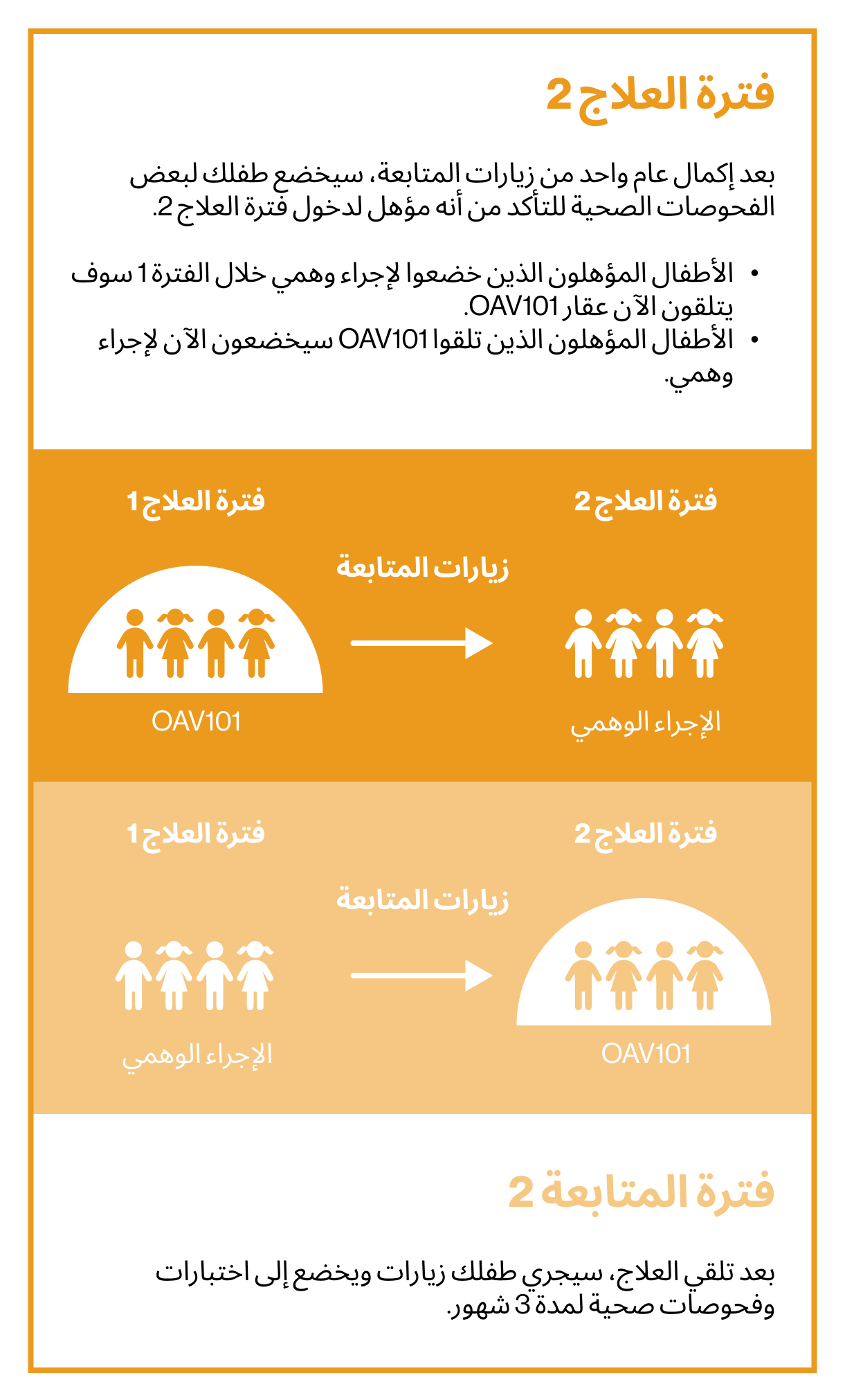 *في نهاية الدراسة، سيكون لدى طفلك خيار التسجيل في دراسة متابعة طويلة الأجل والتي ستتم فيها مراقبة صحته لمدة 15 عامًا إضافيةً.