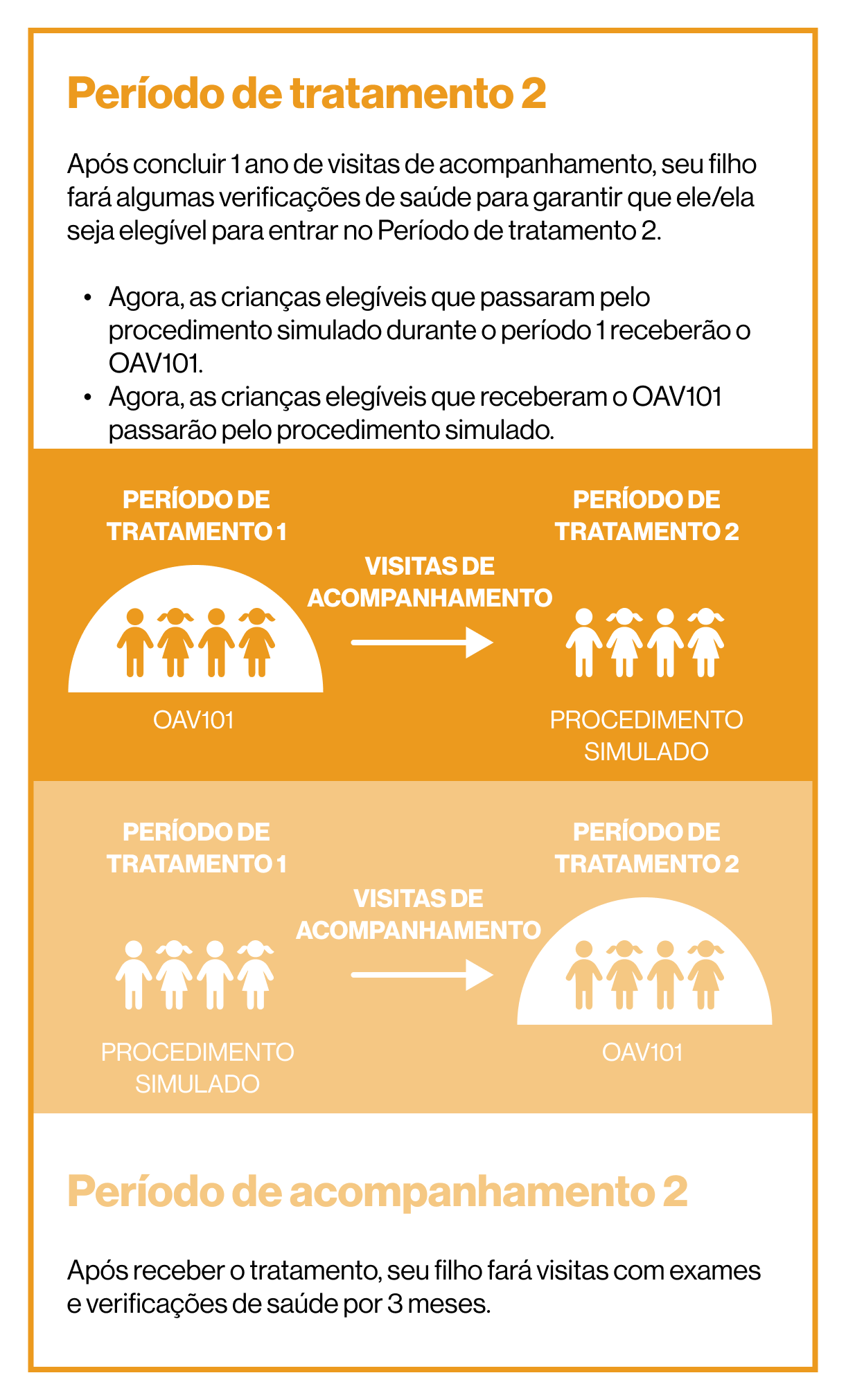 O estudo tem 2 períodos de tratamento, além de 2 períodos de acompanhamento: